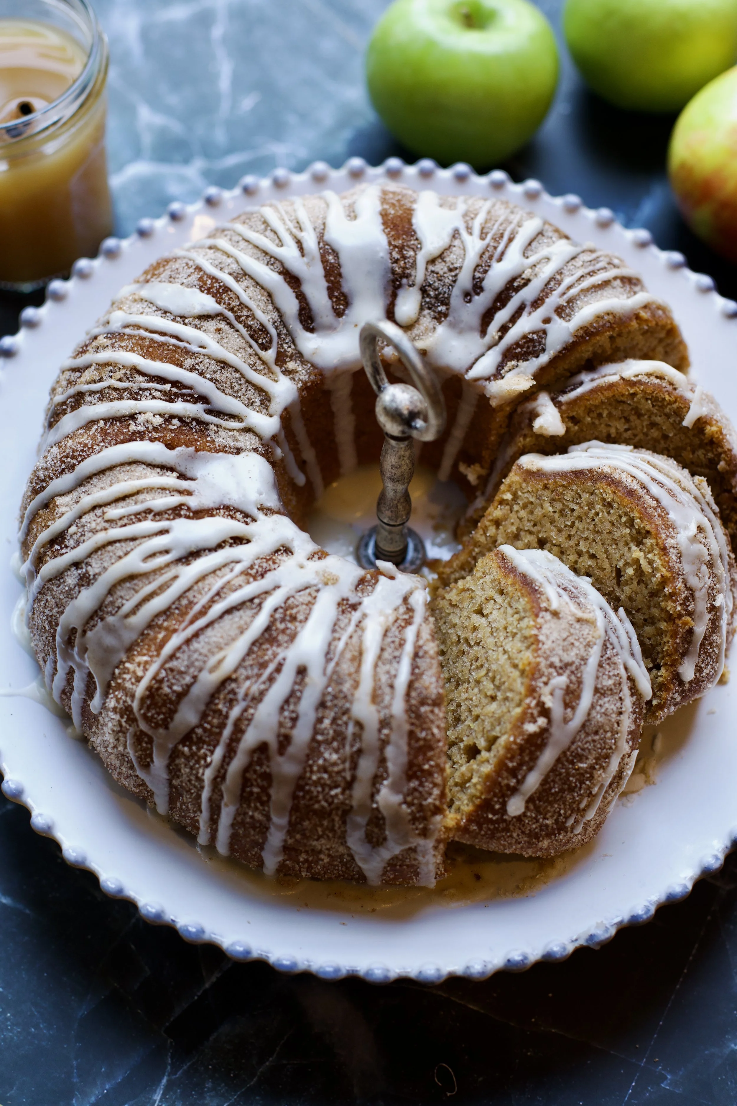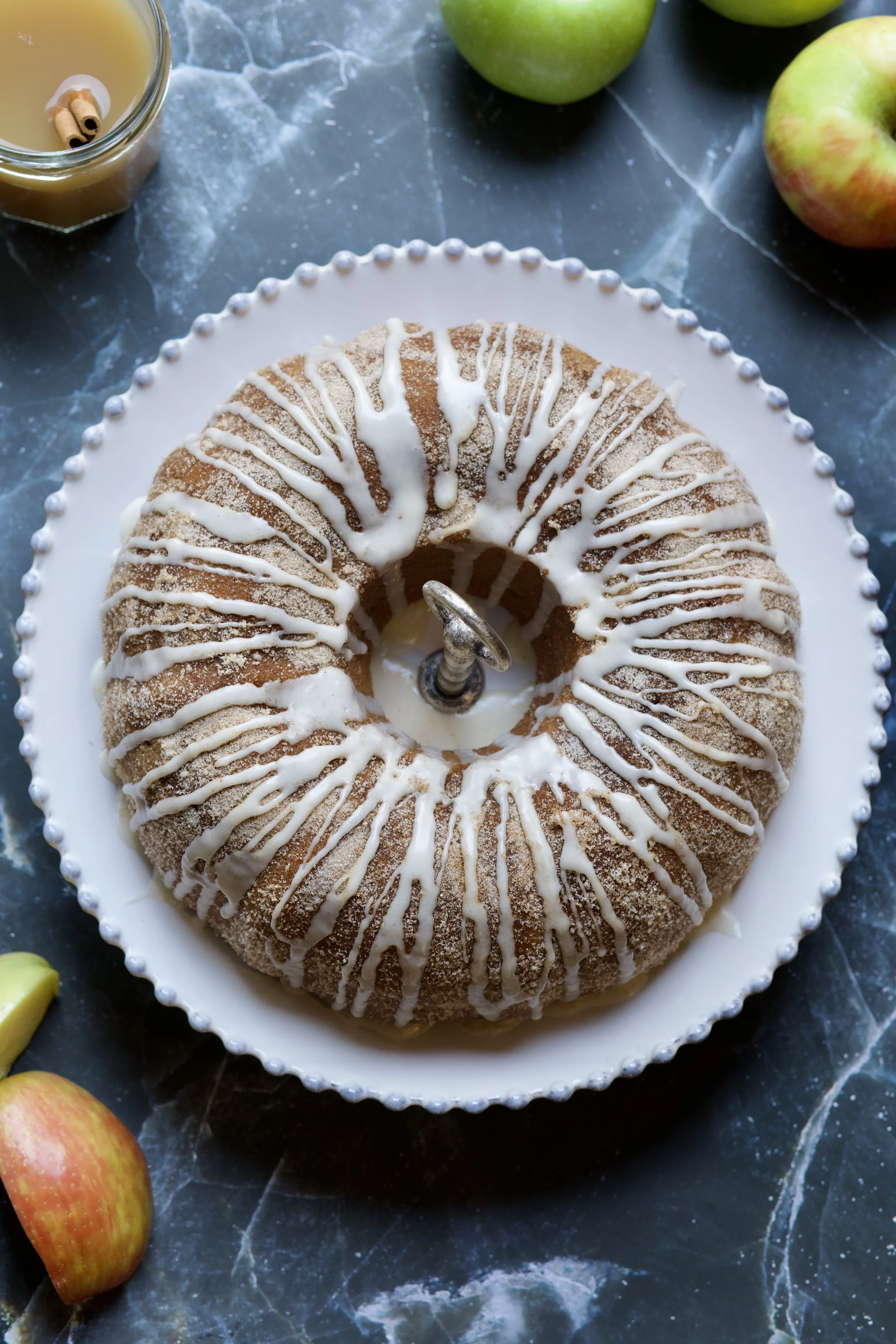 In a small bowl mix the glaze ingredients together, adding the apple cider slowly until the glaze is pourable but not too thin. If you add too much apple cider, simply add a bit more icing sugar. Drizzle over the cake.